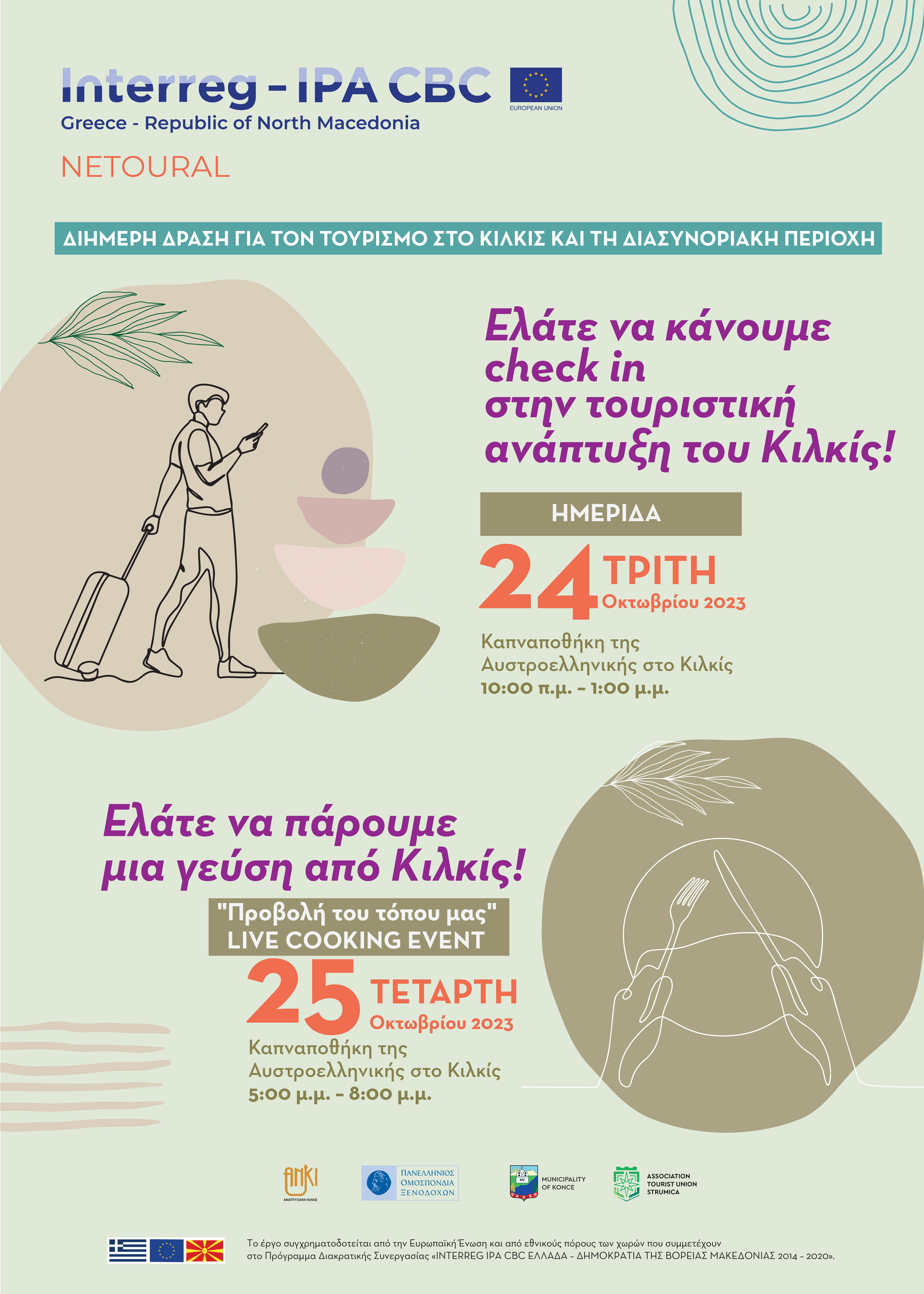 Η εκδήλωση είναι ενταγμένη στο έργο: «Προώθηση εναλλακτικού τουρισμού στη διασυνοριακή περιοχή με επίκεντρο τις δραστηριότητες ευεξίας και ευημερίας, παράλληλα με την προώθηση ποιοτικών γεωργικών προϊόντων και τροφίμων, για τη δημιουργία ευκαιριών απασχόλησης» (Netoural), του Προγράμματος Διασυνοριακής Συνεργασίας «INTERREG IPA CBC Ελλάδα – Δημοκρατία της Βόρειας Μακεδονίας 2014-2020», με τη συγχρηματοδότηση της Ελλάδας και της Ευρωπαϊκής Ένωσης.