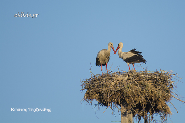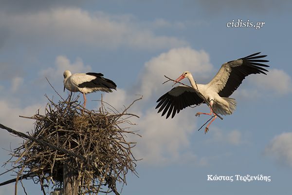Το μεγάλο ταξίδι τους από την Αφρική μέχρι τις γνώριμες φωλιές τους ήταν κουραστικό, αλλά τώρα αρχίζει ο αγώνας για να ξαναγίνει η φωλιά που άφησαν πίσω τους τον περασμένο Αύγουστο. Θα χρειαστούν μεγάλη και ασφαλή φωλιά, γιατί μέσα εκεί θα μεγαλώσουν τα 4-5 νεογέννητά τους.