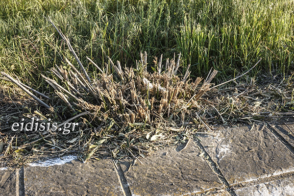 Προχθές, χωρίς κανένας να γνωρίζει το γιατί, κάποιοι πήγαν και κατέστρεψαν τις δεκάδες πικροδάφνες, και από τις δυο πλευρές του δρόμου, μετατρέποντας την όμορφη είσοδο του χωριού σε σεληνιακό τοπίο!