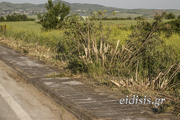 Πριν από χρόνια κάποιοι αποφάσισαν να κόψουν τα δένδρα(!) και να κάνουν πεζοδρόμια και από τις δυο πλευρές του δρόμου, για να προχωρά ποιος άραγε στο πουθενά, λες και έλειψαν οι δρόμοι περιπάτου μέσα στα χωριά. Για να μετριαστούν κάποιο οι τότε αντιδράσεις, φυτεύτηκαν στη διαδρομή αυτή πικροδάφνες στην άκρη των πεζοδρομίων.