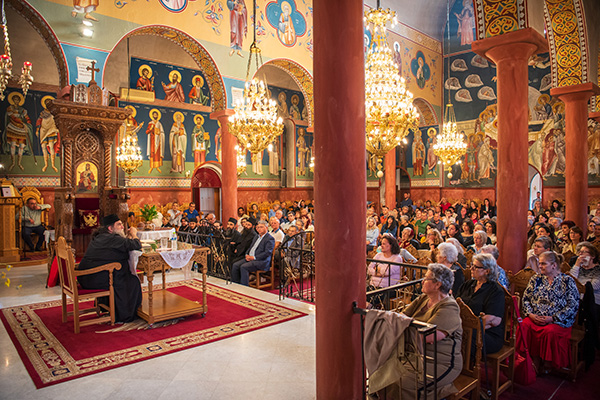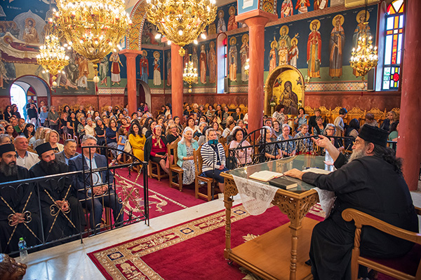 Ο π. Ευάγγελος αφού ευχαρίστησε τον Σεβασμιώτατο Μητροπολίτη Πολυανής και Κιλκισίου κ.Βαρθολομαίο για την κανονική άδεια που του παρείχε να έρθει να μιλήσει στο Κιλκίς μετά από την πρόσκληση του π.Επιφάνιο, κράτησε αμείωτο το ενδιαφέρον των παρισταμένων για δύο περίπου ώρες, αναλύοντας το θέμα: “Πόθεν άρξομαι θρηνεῖν τάς τοῦ ἀθλίου μου βίου πράξεις;”, στίχο από τον Μεγάλο Κανόνα της Εκκλησίας μας, πραγματοποιώντας ένα σύντομο αλλά περιεκτικό ταξίδι του ανθρώπου ως δημιούργημα του Θεού από τον Παράδεισο και την πτώση του έως τη σωτηρία του χάριν της αγάπης του Θεανθρώπου Κυρίου ημών Ιησού Χριστού.