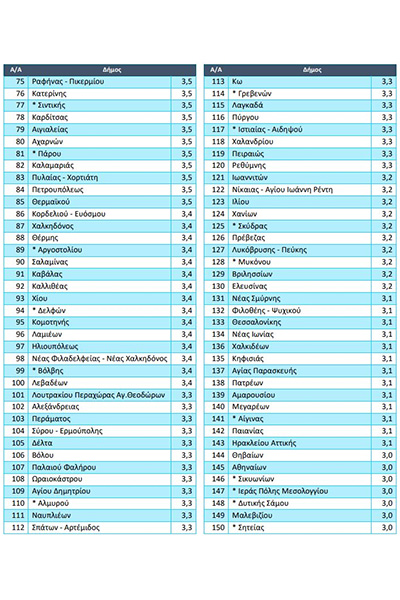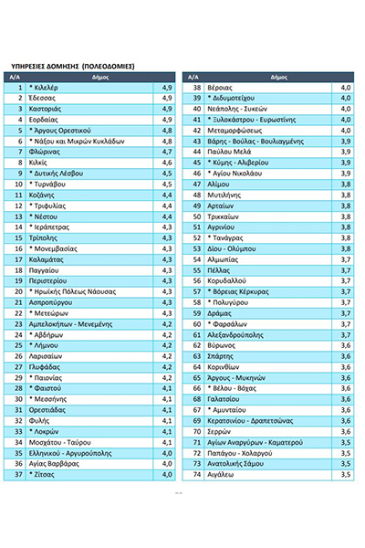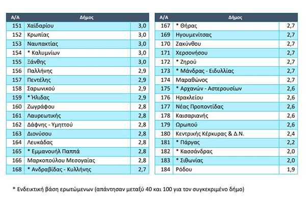 Είναι χαρακτηριστικό ότι κανένας Δήμος δεν έπιασε το “5” με άριστα το “10” και οι καλύτερες επιδόσεις, ξεκινούν από το “4,9”!