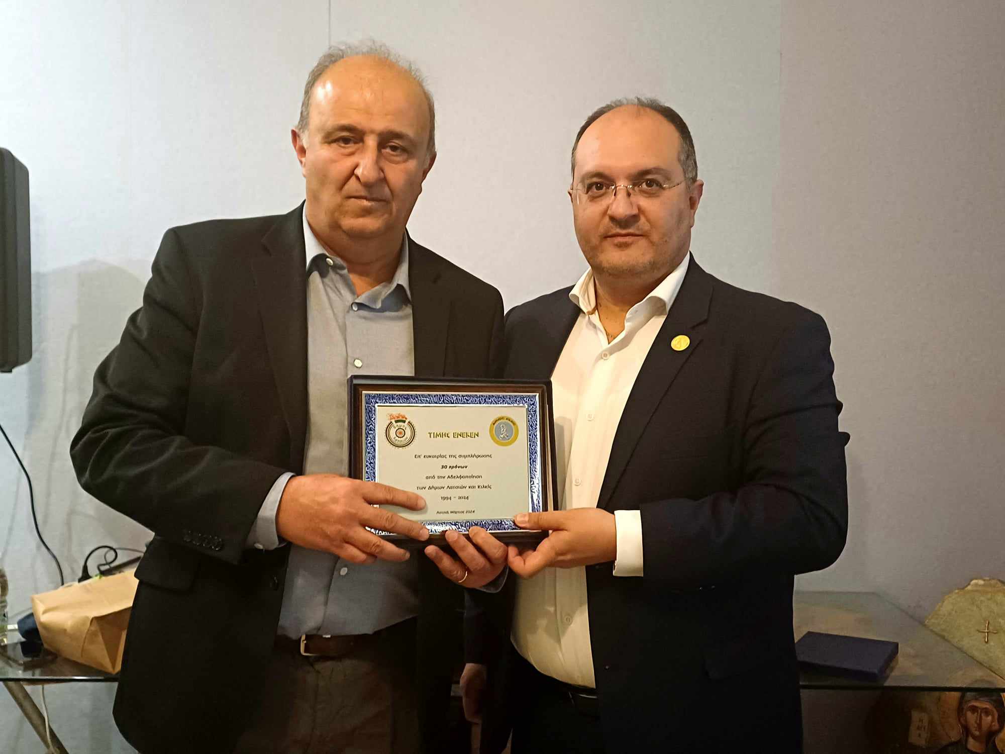 Χρίστος Πιτταράς στις αντιπροσωπείες απένειμε τιμητική πλακέτα στον Δήμαρχο Κιλκίς για τα τριάντα χρόνια της κοινής συμπόρευσης των Δήμων Κιλκίς και Λατσιών ενώ