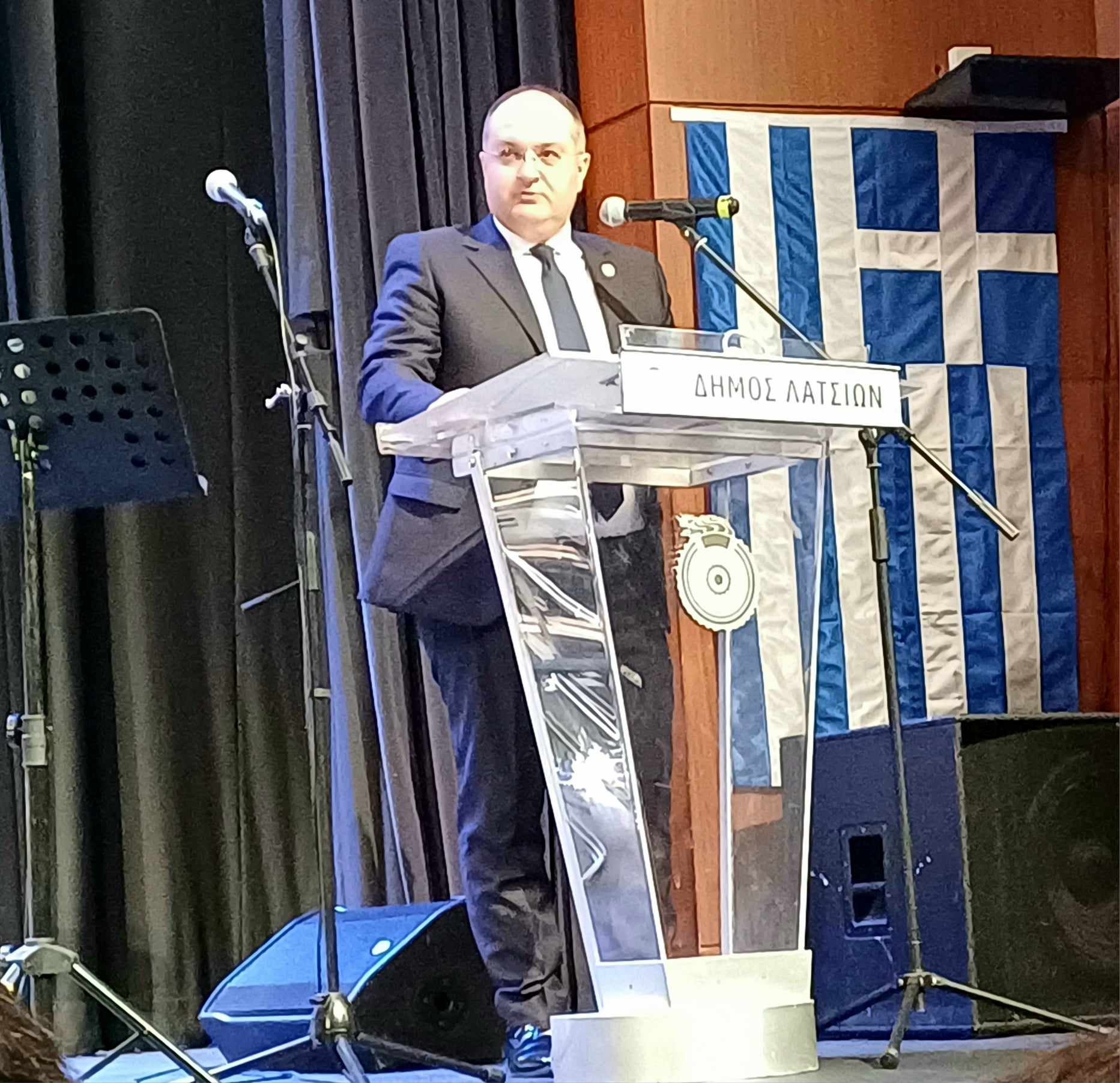 Η 25η Μαρτίου είναι για όλο τον Ελληνισμό η γενέθλια πράξη της ίδρυσης του νεοελληνικού κράτους, τα γεωγραφικά όρια του οποίου καθορίσθηκαν υπό του αίματος του εκχυθέντος εις τα σφαγεία των Κυδωνιών, της Κύπρου, της Χίου, της Κρήτης, των Ψαρών και του Μεσολογγίου είπε ο κ. Κυριακίδης θυμίζοντας με τα τελευταία λόγια την αναφορά του πρώτου Κυβερνήτη της χώρας Ιωάννη Καποδίστρια σχετικά με τις ελληνικές εδαφικές αξιώσεις λίγο πριν την οριστική χάραξη των συνόρων της.