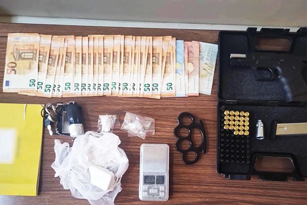 Στους ίδιους χώρους, οι αστυνομικοί βρήκαν ένα τετράδιο με ιδιόχειρες σημειώσεις για τις ποσότητες που διακινούσε το οποίο εξετάζεται, αλλά κατέσχεσαν, ακόμη, ένα πιστόλι κρότου, 23 αβολίδωτα φυσίγγια των 9 χιλιοστών, μια σιδερογροθιά και έναν εκτοξευτήρα φωτοβολίδων.