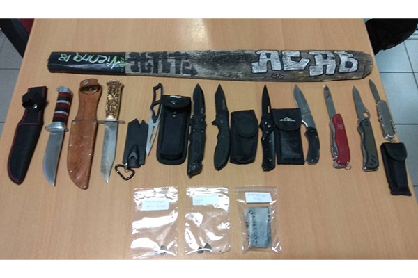 Συγκεκριμένα, συνελήφθησαν χθες το απόγευμα σε περιοχή του Κιλκίς, από αστυνομικούς της Ομάδας Πρόληψης και Καταστολής Εγκληματικότητας της Διεύθυνσης Αστυνομίας Κιλκίς, δύο άτομα από την Αυστρία, 27 και 30 ετών, καθώς σε έλεγχο που πραγματοποιήθηκε στο όχημα που επέβαιναν βρέθηκαν και κατασχέθηκαν 10 μαχαίρια, ένα αυτοσχέδιο ξύλινο ρόπαλο και μικροποσότητες κάνναβης και ηρωίνης.