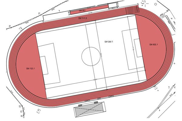 - Την προμήθεια και εγκατάσταση συνθετικού ελαστικού τάπητα στίβου.