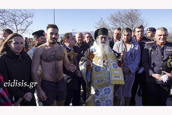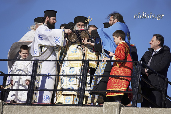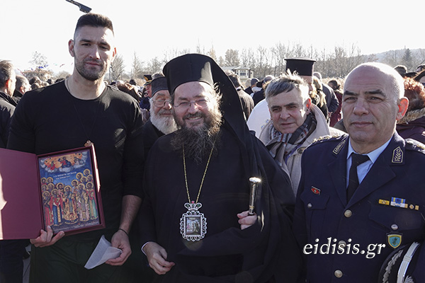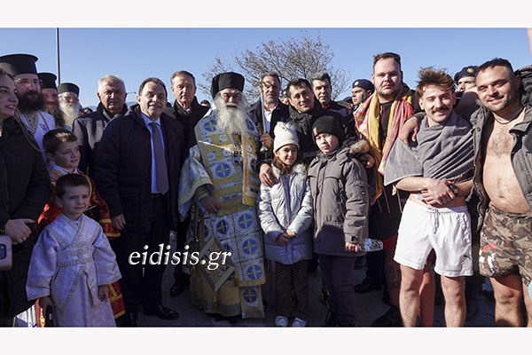Πλήθος κόσμου και όλοι οι θεσμικοί παράγοντες της πόλης έδωσαν το παρών, με τον Μητροπολίτη Πολυανής και Κιλκισίου κ. Βαρθολομαίο να χοροστατεί, με τους πιστούς να παίρνουν την ευχή του και τους κολυμβητές -μικρούς και μεγάλους- να αψηφούν το κρύο και να βουτούν για να πιάσουν τον σταυρό, με τον Αναστάσιο Λουνή να είναι ο πλέον τυχερός!