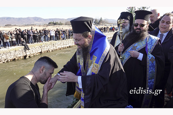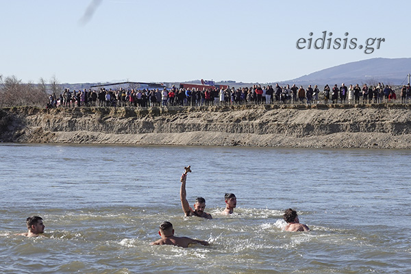 Ο ισχυρός αέρας και τα ρεύματα στα παγωμένα νερά του Αξιού ποταμού δεν στάθηκαν εμπόδιο για τους δέκα τολμηρούς κολυμβητές, που βούτηξαν για να πιάσουν τους σταυρούς των δυο εκκλησιών, της Αξιούπολης και του Πολυκάστρου, παίρνοντας τις ευχές του Μητροπολίτη και το θερμό χειροκρότημα των εκατοντάδων πιστών, που βρέθηκαν στη γέφυρα και στις δυο όχθες του ποταμού. Πιο τυχεροί στάθηκαν δυο στρατιωτικοί, που μπόρεσαν να φθάσουν πρώτοι στους σταυρούς.