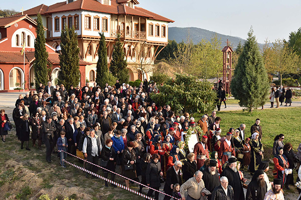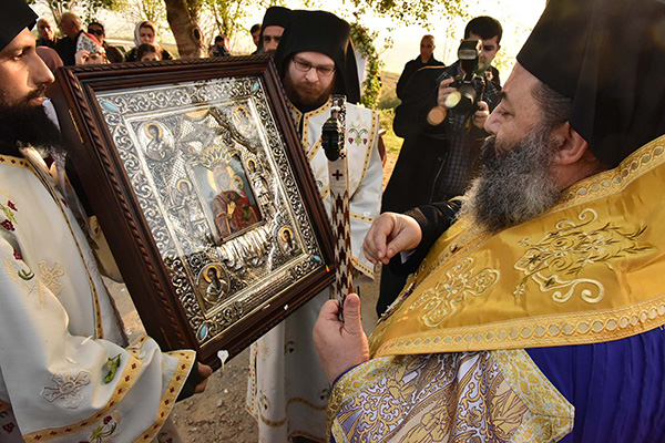 Ἑκατοντάδες πιστοί ἔφθασαν στό Ἱερόν Ἡσυχαστήριον μέ λεωφορεῖα καί Ι.Χ. γιά νά ὑποδεχθοῦν τήν Μητέρα τοῦ Θεοῦ. Ἡ θαυματουργή εἰκόνα τῆς Παναγίας ἀκολούθησε τούς πρόσφυγες ἀπό τήν Καππαδοκία καί ἔφθασε μαζί τους στήν Ἐλεύθερη Πατρίδα τό 1924.
