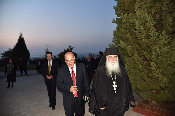 Ἡ πομπή κατευθύνθηκε πρός τόν Ναό τῆς Παναγίας «Ἄξιόν Ἐστιν», ὅπου ἐψάλη ὁ Κατανυκτικός Ἑσπερινός, χοροστατοῦντος τοῦ Σεβασμιωτάτου. Στό τέλος τοῦ Ἑσπερινοῦ ὁ Σεβασμιώτατος κ.Ἰωάννης ὁμίλησε στούς πιστούς γιά τήν σημασία τοῦ Σταυροῦ στή ζωή μας. Ἀναφέρθηκε ἐπίσης γιά τήν μεγάλη εὐλογία πρός τό Ἱερό Ἡσυχαστήριο νά ὑποδεχθεῖ τήν θαυματουργό εἰκόνα τῆς Παναγίας τῆς «Μικρασιάτισσας».