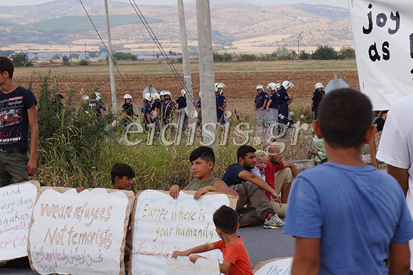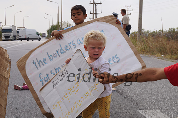Θέλουμε να ζήσουμε με τους δικούς μας… Να ενωθούμε με τις οικογένειές μας… Μαμά Μέρκελ σώσε μας… Στα τρία αυτά συνθήματα γραμμένα σε χαρτόνια συμπυκνώνονται τα αιτήματα περίπου 200 Σύρων προσφύγων που κινούμενοι εν πομπή χθες το μεσημέρι, λίγο πριν τις 12.οο κατέλαβαν και εγκαταστάθηκαν στο οδόστρωμα της οδού Κιλκίς – Πετριτσίου στο ύψος της διασταύρωσης Χέρσου.