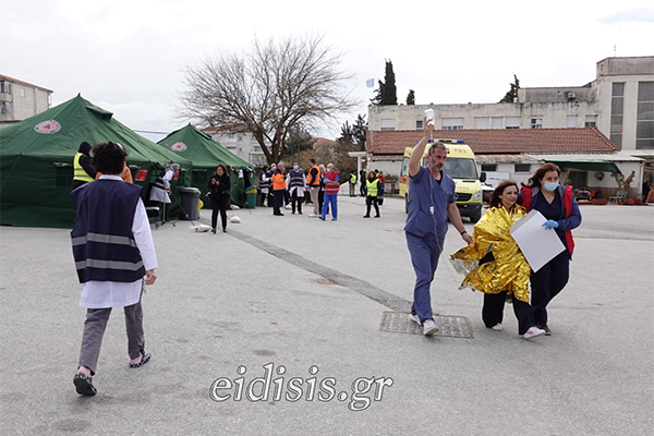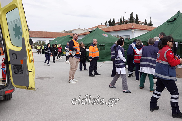 Το σενάριο της άσκησης προέβλεπε σεισμό 6 ρίχτερ και λειτουργία του νοσοκομείο σε σκηνές στον αύλειο χώρο του.