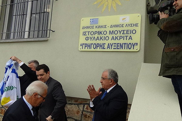 Τα εγκαίνια του Ιστορικού Μουσείου – Φυλακίου Ακρίτα ‘’Γρηγόρης Αυξεντίου’’ εκ παραλλήλου με την αποκαλυπτήρια πλάκα αναφοράς τέλεσε ο Υπουργός Άμυνας της Κυπριακής Δημοκρατίας Χριστόφορος Φωκαϊδης ο οποίος στο χαιρετιστήριο λόγο του υπογράμμισε την ξεχωριστή θέση που κατέχει στην Κυπριακή ιστορική εποποιία ο Γρηγόρης Αυξεντίου.