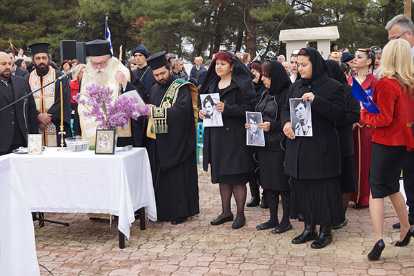 Αίσθηση, στο ξεκίνημα της εκδήλωσης, προκάλεσε η λιτανεία χορού μαυροφορεμένων γυναικών από το παρεκκλήσι του Αγίου Γεωργίου στο χώρο του Μουσείου κρατώντας μια μεγάλη φωτογραφία του Κύπριου ήρωα και φωτογραφίες των αγνοουμένων της Κύπρου. Η συγκίνηση έφτασε στο κατακόρυφο όταν η έφηβη Εύας Παπαδοπούλου ως εκπρόσωπος της Τοπικής Κοινότητας Ακρίτα απήγγειλε τους στίχους του Κ. Μόντη που γράφτηκαν για το Γρηγόρη Αυξεντίου ‘’Να πάρουμε μια σταγόνα από το αίμα του να καθαρίσουμε το δικό μας, να πάρουμε μια σταγόνα από το αίμα του να βάψουμε το δικό μας για να μη μπορέσει πια ποτέ να το ξεθωριάσει ο φόβος’’.