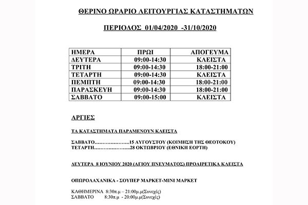 Με θερινό ωράριο η λειτουργία των καταστημάτων