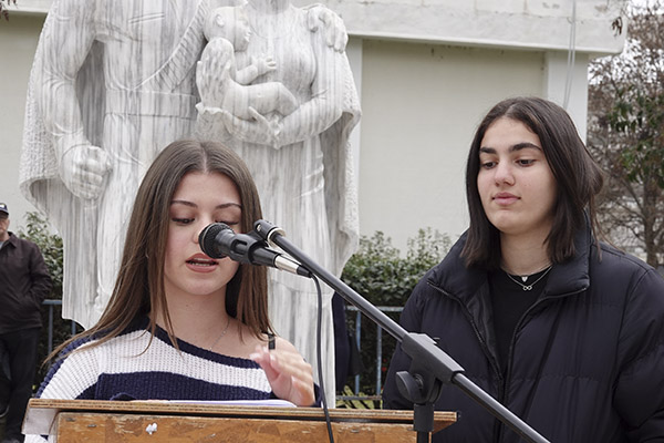 Η συγκέντρωση ξεκίνησε με το μήνυμα του Συλλόγου Συγγενών Θυμάτων Τεμπών 2023, το οποίο διάβασε η πρόεδρος του Συλλόγου Φιλολόγων Κιλκίς Ελένη Λιαρετίδου.