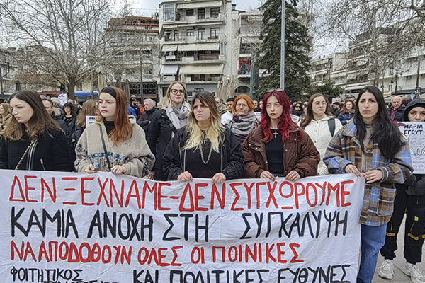 ΕΦΤΑΙΞΑΝ ΚΑΙ ΦΤΑΙΝΕ, το κράτος και η δικαιοσύνη που στηρίζουν αυτή την πολιτική, που από την πρώτη στιγμή μας αντιμετώπισαν εχθρικά, στηρίζοντας τη συγκάλυψη, που επιχειρήθηκε σε όλα τα επίπεδα: με τα τεράστια κενά στην ανάκριση, τον κατακερματισμό της δικογραφίας της κύριας δίκης σε επιμέρους δίκες, την προκλητική κοροϊδία στο θέμα των εκταφών, το ελλιπέστατο κατηγορητήριο! Όπου υπάρχει ο αδιανόητος χαρακτηρισμός της δολοφονίας των 57 θυμάτων του Εγκλήματος των Τεμπών, ως ανθρωποκτονία από αμέλεια και όχι με ΔΟΛΟ, παρά τα σωρευτικά ενοχοποιητικά στοιχεία που προέκυψαν. Όπου δεν υπάρχει καμία απόδοση ευθυνών ΓΙΑ ΤΟ ΘΑΝΑΤΟ ΚΑΙ ΤΗΝ ΑΠΑΝΘΡΑΚΩΣΗ των 25 από τα 57 θύματα. Όπου ΔΕΝ ΑΓΓΙΖΟΝΤΑΙ τα πολιτικά πρόσωπα, η εποπτεύουσα – και χορηγούσα τα πιστοποιητικά- ευρωπαϊκή ERA. ΑΥΤΗ Η ΣΥΓΚΑΛΥΨΗ ΣΤΗΡΙΖΕΤΑΙ πάνω στο διαμορφωμένο, από την σημερινή και τις προηγούμενες κυβερνήσεις, νομικό πλαίσιο.