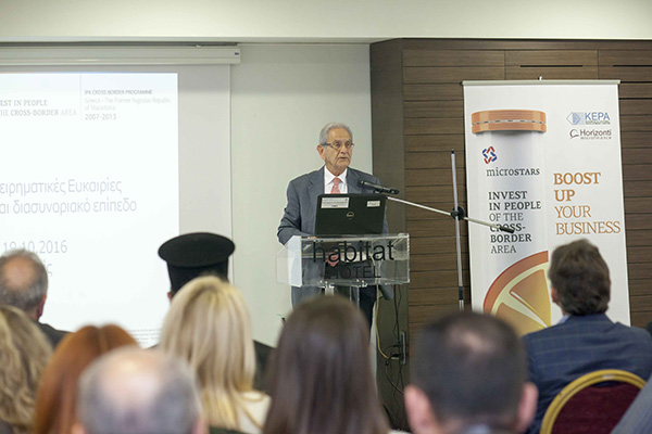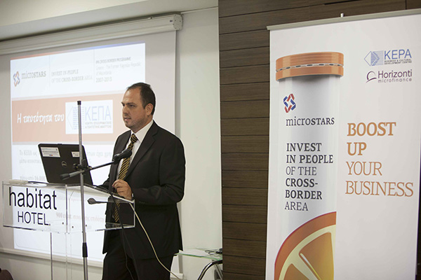 Στη διάρκεια της εκδήλωσης, ο υπεύθυνος του έργου «microSTARS» κ. Νεοκλής Στάμκος, στέλεχος του ΚΕΠΑ, μίλησε για τις νέες επιχειρηματικές ευκαιρίες με οδηγό τις μικροπιστώσεις*. O κ. Στάμκος παρουσίασε το ΚΕΠΑ και το έργο «microSTARS», υπογραμμίζοντας πως σκοπός του έργου είναι η δημιουργία βιώσιμων οικονομικών δραστηριοτήτων και θέσεων εργασίας στη διασυνοριακή περιοχή με την ενίσχυση της ικανότητας και της κινητοποίησης των ανθρώπινων πόρων. Ειδικότερα όπως ανέφερε, το έργο απευθύνεται σε ανέργους που θέλουν να αναπτύξουν επιχειρηματική δραστηριότητα, σε νεοϊδρυθείσες μικρές επιχειρήσεις και σε υφιστάμενες μικρές επιχειρήσεις και έχει ως στόχο να υποστηρίξει τις πολύ μικρές (έως 10 άτομα) και τις μικρές (έως 50 άτομα) επιχειρήσεις κάθε μορφής, διευκολύνοντας την ίδρυση και ανάπτυξη νέων επιχειρήσεων, με παροχή υπηρεσιών υποστήριξης και μικροπιστώσεων. Ο κ. Στάμκος αναφέρθηκε στην πιλοτική λειτουργία των δύο Κέντρων Παροχής Υπηρεσιών Επιχειρηματικής Ανάπτυξης στη Θεσσαλονίκη και το Κιλκίς και στις υπηρεσίες και τα “εργαλεία” του Έργου «microSTARS» (καθοδήγηση, ατομική συμβουλευτική υποστήριξη, workshops, on-line πλατφόρμα εκπαίδευσης schoox, μικροπιστώσεις).