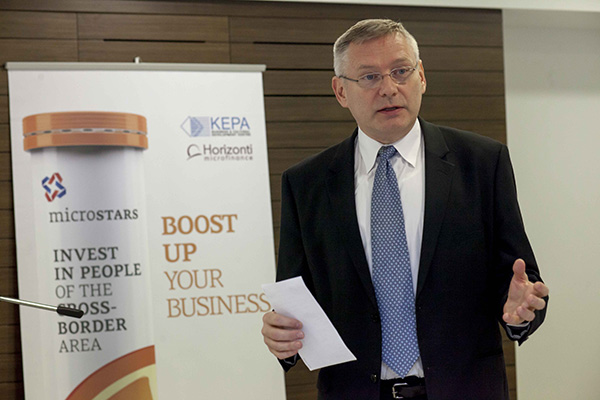 Τον εταίρο φορέα υλοποίησης του έργου Microcredit Foundation Horizonti εκπροσώπησε ο Διευθύνων Σύμβουλος του μικροπιστωτικού φορέα κ. Vase Davaliev. Ο κ. Davaliev υπογράμμισε τη μακρόχρονη εμπειρία του φορέα σε θέματα μικροχρηματοδοτήσεων πολύ μικρών επιχειρήσεων και την ανάγκη αυτών για περαιτέρω υποστήριξη, επισημαίνοντας τη δυναμική της προοπτικής σε διασυνοριακό επίπεδο στο μέλλον.
