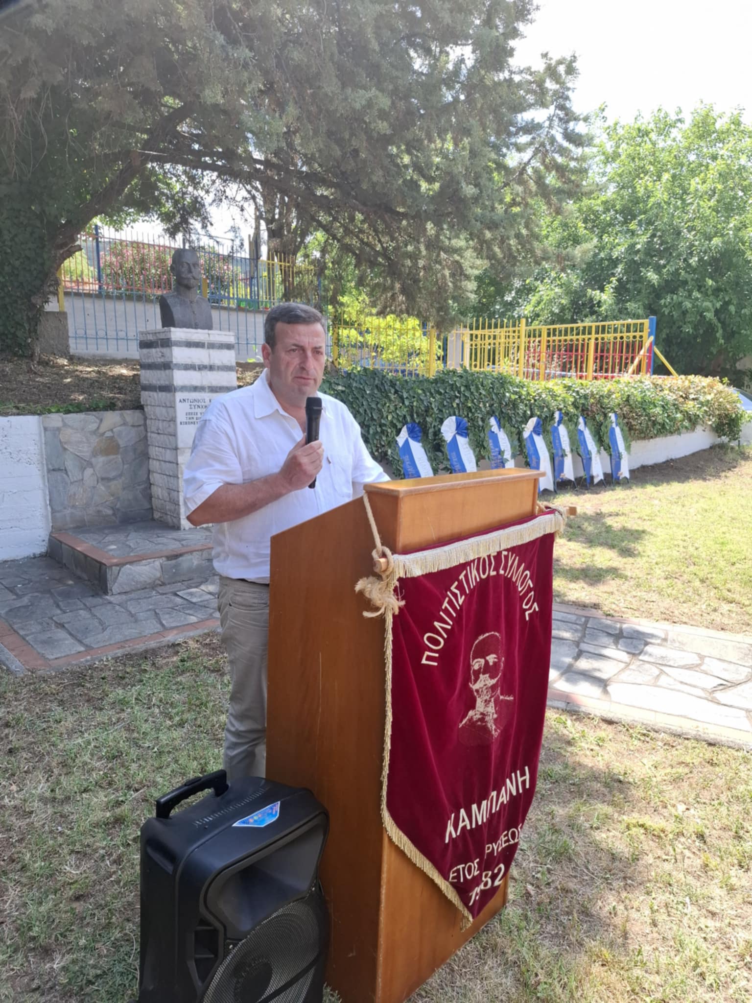 ο περιφερειακός σύμβουλος Σταμάτης Παπουλίδης, ο Πρόεδρος της Δημοτικής Κοινότητας Καμπάνη Γιώργος Φιλιππίδης και ο Αντιπρόεδρός της Κώστας Μάρδας, ο Πρόεδρος της Δημοτικής Κοινότητας Γαλλικού Αναστάσιος Νικολαϊδης, ο Πρόεδρος του Πολιτιστικού Συλλόγου Καμπάνη Νίκος Καλτσίδης, η Πρόεδρος του Συλλόγου Γυναικών Καμπάνη Αθηνά Φιλιππίδου και κάτοικοι του οικισμού.
