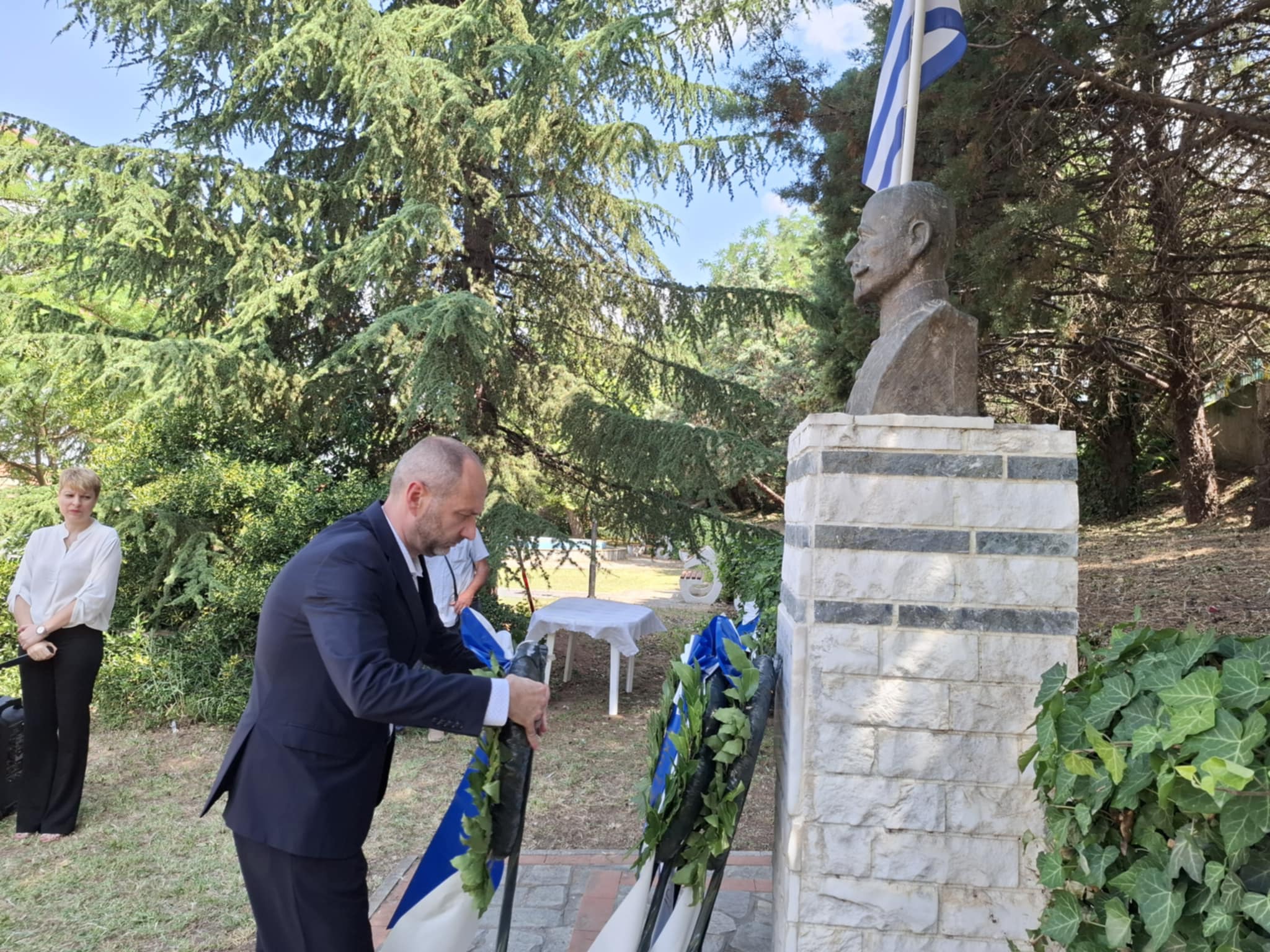 Το τελετουργικό ολοκληρώθηκε με την τήρηση σιγής ενός λεπτού και τον εθνικό μας ύμνο από τη Φιλαρμονική Νέας Σάντας.