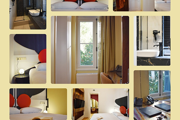 Ψηλοτάβανοι αρχοντικοί χώροι με οροφογραφίες, σουίτες με εσωτερικά αλλά και εξωτερικά τζακούζι με θέα τον Παρθενώνα, εσωτερική αυλή κατά τα πρότυπα της παλιάς Αθήνας της belle époque και ιδιαίτερο interior design, είναι κάποια από τα βασικά χαρακτηριστικά του.