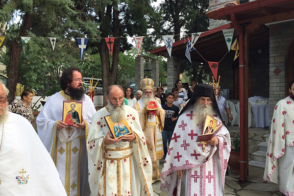 Με σημαία της τον τροπαιοφόρο μας Άγιο Γεώργιο και παραστάτες του την Αγία Παρασκευή με τον Αγιο Διομήδη (μάρτυρες των πρώτων αιώνων) και τον άγιο Γεώργιο της Ραψάνης (νεομάρτυρα της σκλαβιάς).