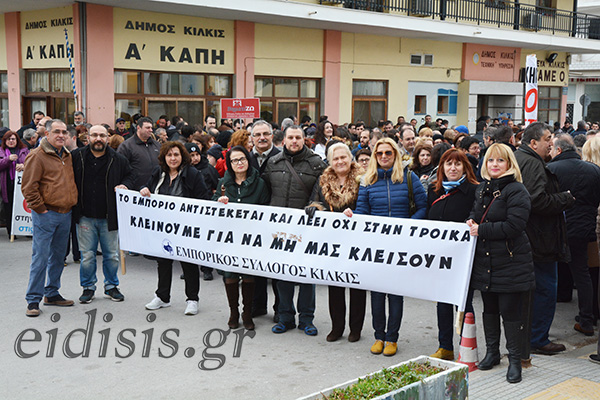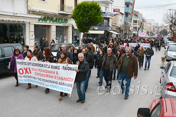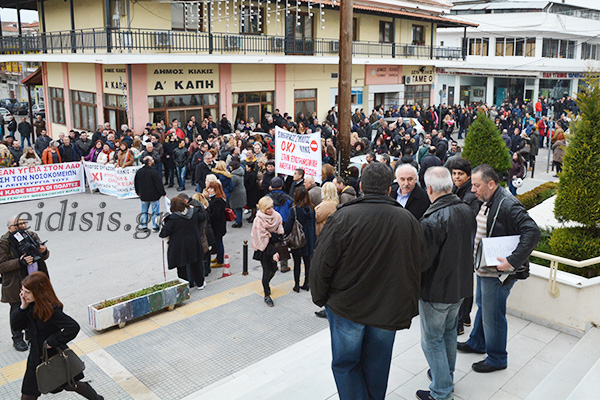 Ο εκπρόσωπος του Εργατικού Κέντρου διάβασε το ψήφισμα των συγκεντρωμένων. Στους συγκεντρωμένους μίλησαν, ο πρόεδρος της ΑΔΕΔΥ Κιλκίς Αχιλλέας Καλεμκερίδης, ο πρόεδρος του Ιατρικού Συλλόγου, εκ μέρους όλων των επιστημονικών φορέων, Βλαδίμηρος Παναγιωτίδης, η πρόεδρος των Δημοτικών Υπαλλήλων Ειρήνη Γκαϊταρεζάκη και ο πρόεδρος του Εμπορικού Συλλόγου Κιλκίς Σταύρος Γιαβασίδης, ο οποίος και καταχειροκροτήθηκε.