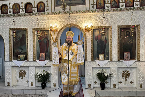 Χοροστάτησε του Όρθρου και προεξήρχε της Αρχιερατικής Θείας Λειτουργίας στον Ιερό Ναό Προφήτου Ηλιού, στον οποίο προσήλθαν οι μόλις τέσσερις οικογένειες που κατοικούν μόνιμα στον μικρό οικισμό καθώς και ευσεβείς πιστοί των γειτονικών χωριών με επικεφαλής τον φιλότιμο Πρόεδρο της Κοινότητας Μουριών Θεόφιλο Τιριακίδη.