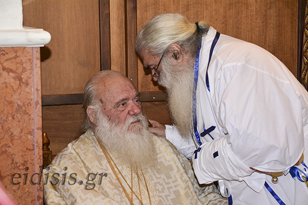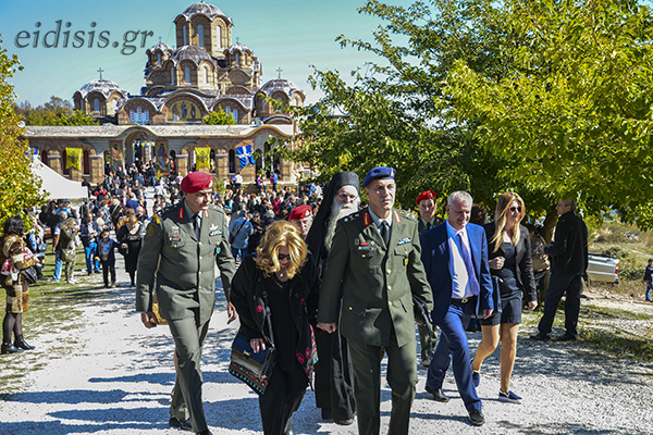 Ο Μακαριώτατος χοροστάτησε στον Εσπερινό, κατά τον οποίο ο οικείος ποιμενάρχης Σεβ. κ. Δημήτριος, μετά από σύντομη θεολογική εισαγωγή, αναφέρθηκε επιγραμματικά σε έκδηλα σημεία της θείας πρόνοιας για την πορεία της Μονής και την ανέγερση του Καθολικού, δια της οποίας εθαυμάστωσε ο Κύριος τα ελέη Του. Επί 23 συνεχή έτη τόνισε, από το 1993, διηνεκής η παντευεργέτις παρουσία των Αγίων έτσι ώστε να επιτελεσθεί ένα έργο αξιώσεων στην ακριτική Μητρόπολή μας.