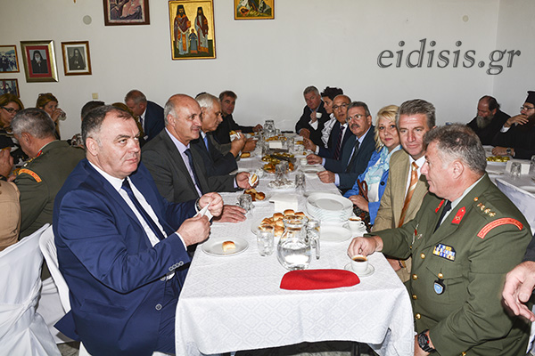 Στα εγκαίνια και τη θεία Λειτουργία συμμετείχαν παρόντες ο Δήμαρχος Γουμένισσας κ. Χρήστος Γκουντενούδης, με Αντιδημάρχους και στελέχη του Δήμου, ο Αντιπεριφερειάρχης Κιλκίς κ. Ανδρέας Βεργίδης, ο Γεν. Πρόξενος της Κύπρου κ. Αντώνιος Ανδρίτης, οι εκ Γρίβας αντιδήμαρχος ΔΕ Γουμένισσας κα Ελένη Δούμου και πρόεδρος ΔΚ Γρίβας κ. Γεώργιος Μπακάλης, ο Μέραρχος της 2ης Μεραρχίας Εδέσσης υποστράτηγος κ. Συμεών Κεβεντζίδης, οι Διοικητές της 33ης Μ/Κ Ταξιαρχίας Ταξίαρχος κ. Αθανάσιος Ναλμπάντης και της 71ης Αερομεταφερόμενης Ταξιαρχίας Ταξίαρχος κ. Πάρης Καπραβέλος με τον Υποδιοικητή Συνταγματάρχη ΠZ κ. Γεώργιο Μπόζμπαλη και αξιωματικούς της 71ης Ταξιαρχίας, ο Αστυνομικός Διευθυντής Κιλκίς και οι τοπικοί εκπρόσωποι της Αστυνομίας (Διοικητής και Υποδιοικητής του Α.Τ.Γουμένισσας που με ενίχυση δύναμης ανέλαβαν και εξυπηρέτησαν υποδειγματικά την ασφάλεια και τάξη του προσκυνήματος).