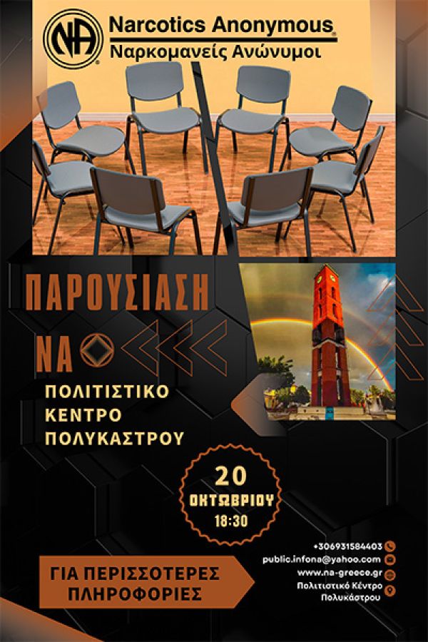 Σκοπός της παρουσίασης θα είναι η διεύρυνση της επίγνωσης του κοινού και των τοπικών φορέων για την λειτουργία του προγράμματος ΝΑ στην Ελλάδα και παγκοσμίως καθώς εδώ και δεκαετίες αποτελεί μια ζωτική πηγή βοήθειας στο πεδίο του εθισμού.
