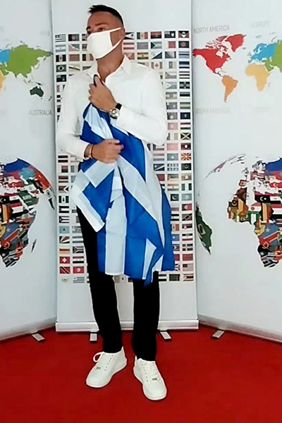 Αμέσως μετά από την ανακοίνωση των αποτελεσμάτων ο Έλληνας νεοκλεγέντας παρουσιάστηκε κρατώντας στα χέρια του με συγκίνηση τη δοκιμασμένη αλλά υπερήφανη γαλανόλευκη σημαία!