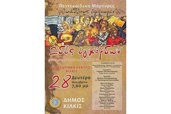 Με ένα μοναδικό μουσικό ταξίδι στο Βυζάντιο, στην Καππαδοκία, στον Πόντο, στη Βιθυνία και στη Μικρά Ασία τιμά τη μνήμη των πολιούχων του Κιλκίς, ΠεντεκαιΔεκα Μαρτύρων, ο Δήμος Κιλκίς.