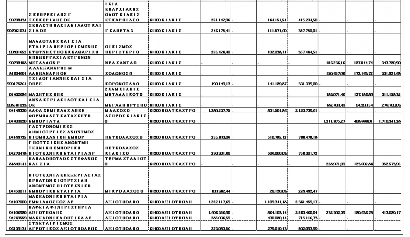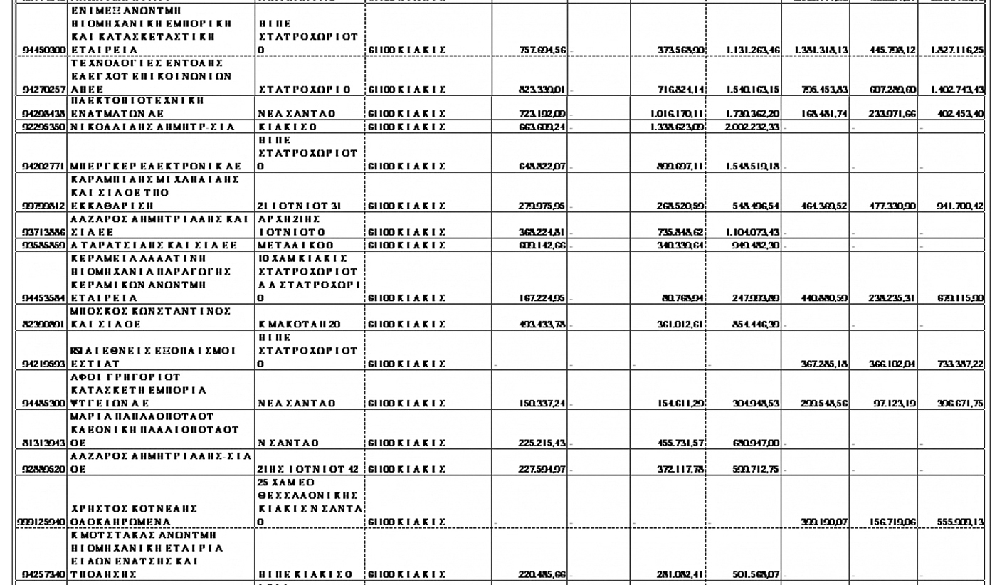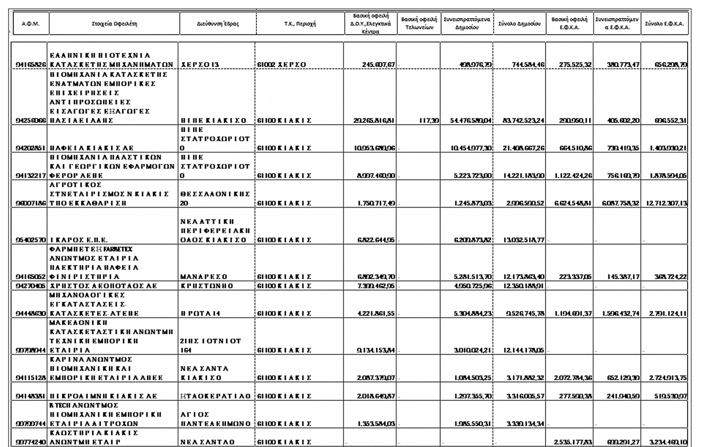 Τα νομικά πρόσωπα-εταιρείες του ν. Κιλκίς που συμπεριλαμβάνονται στη λίστα, έτσι όπως δημοσιοποιήθηκε από την ΑΑΔΕ, καταγράφονται στο σχετικό πίνακα: