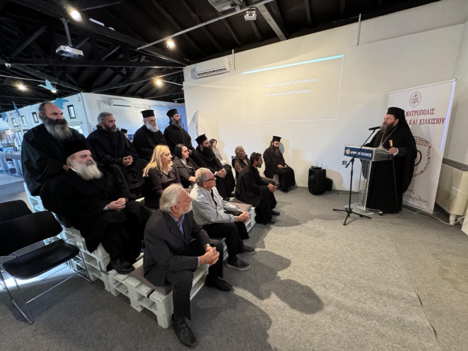 Στον χαιρετισμό του ο Σεβασμιώτατος Μητροπολίτης Πολυανής και Κιλκισίου κ. Βαρθολομαίος και Πρόεδρος της ΑΜΚΕ "Κορμοράνος" μίλησε για την ανάγκη ευαισθητοποίησης μικρών και μεγάλων για την προστασία του περιβάλλοντος και για την αξία των υγροτόπων, υπογραμμίζοντας ότι η κλιματική αλλαγή είναι ένα θέμα που πρέπει να απασχολεί όλους.