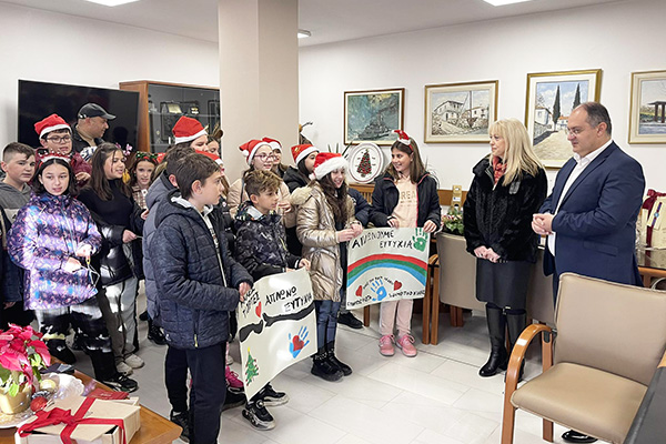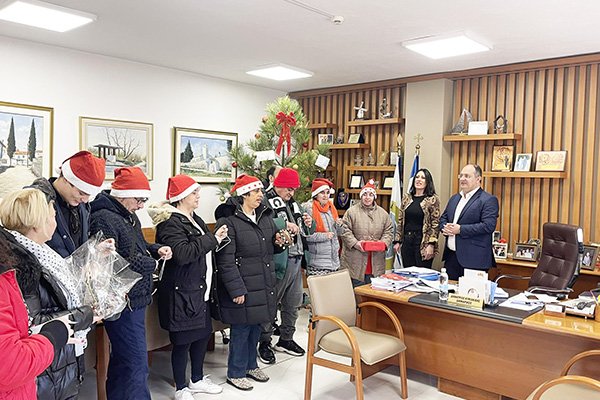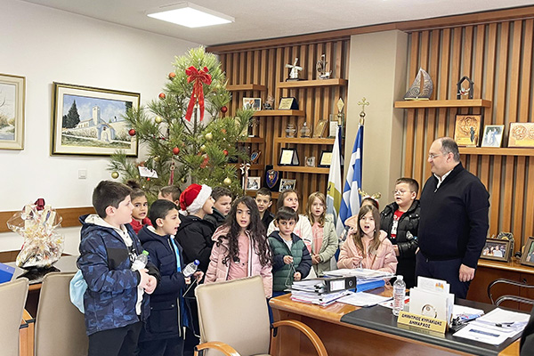 Χριστουγεννιάτικα παραδοσιακά κάλαντα, φερμένα από κάθε γωνιά της χώρας, πλημμύρισαν το Δημαρχείο, τραγουδισμένα με ιδιαίτερη τέχνη από τους νεαρούς καλαντάρηδες, που συγχρόνισαν τις νότες με τα μουσικά σύνεργα της κιθάρας, του φλάουτου και με τα χριστουγεννιάτικα τρίγωνα.