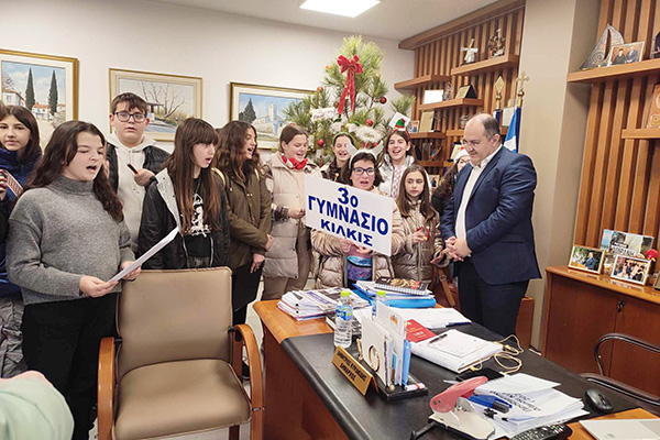 Στον Δήμαρχο Κιλκίς τα.. έψαλλαν οι μαθητές του 1ου και 9ου Δημοτικού Σχολείου Κιλκίς, του 3ου Γυμνασίου, του 1ου ΕΠΑΛ, του Ενιαίου Ειδικού Επαγγελματικού Γυμνασίου – Λυκείου τα παιδιά του Κέντρου Κοινωνικής Στήριξης Κιλκίς και η χορωδία της 71ης Αερομεταφερόμενης Ταξιαρχίας ‘’Πόντος’’ που τραγούδησε ποντιακά κάλαντα.