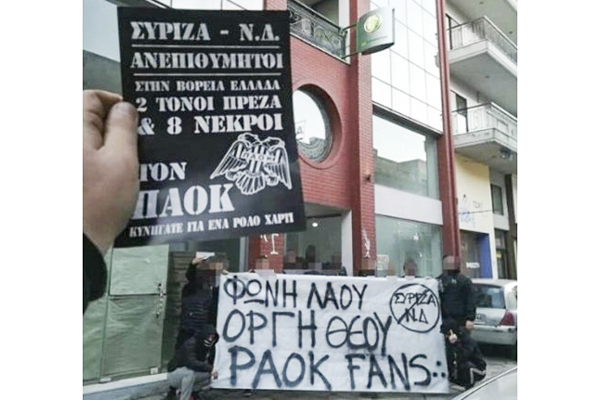 Παρέμβαση οπαδών του ΠΑΟΚ στα γραφεία ΣΥΡΙΖΑ-ΝΔ και στο Κιλκίς