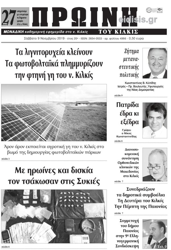 Πέντε χρόνια πριν. Διαβάστε τι έγραφε η καθημερινή εφημερίδα ΠΡΩΙΝΗ του Κιλκίς στις 9-11-2019