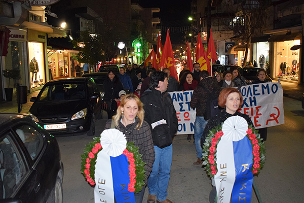 Μετά τη συγκέντρωση πραγματοποιήθηκε πορεία στην πόλη με κατεύθυνση το μνημείο της Εθνικής Αντίστασης στο Δημαρχείο όπου και έγινε κατάθεση στεφάνων.