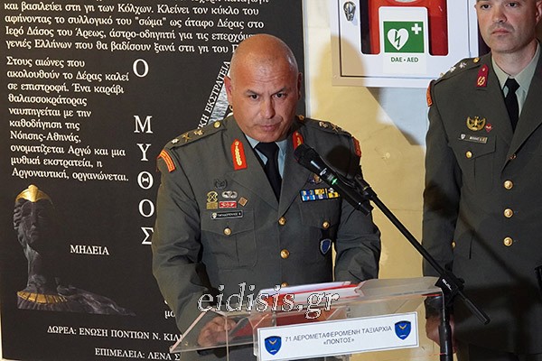 Ακολούθησαν χαιρετισμοί των διοργανωτών και των επισήμων. Από την πλευρά της Ταξιαρχίας απηύθυνε χαιρετισμό ο Ταξίαρχος κ. Βασίλειος Παπαδόπουλος, ενώ εκ μέρους της Ένωσης Ποντίων ν. Κιλκίς «Οι Αργοναύτες» μίλησε ο Πρόεδρος κ. Παναγιώτης Δαμιανίδης, ο οποίος εξέφρασε τη συγκίνηση και την υπερηφάνεια του συλλόγου για τη δωρεά της μόνιμης έκθεσης. Χαιρετισμό απηύθυνε επίσης ο π. Επιφάνιος Θεοδωρίδης, εκπροσωπώντας τη Μητρόπολη.