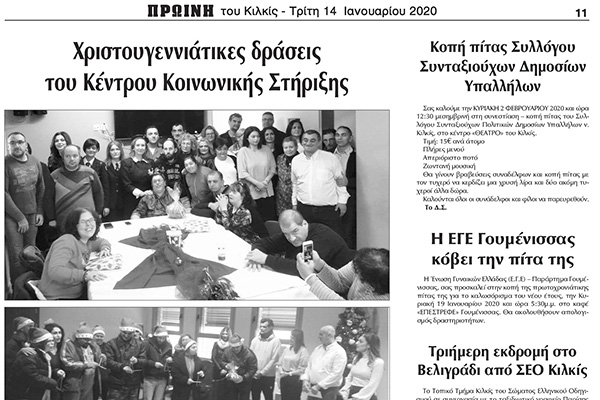 Πρωινή Κιλκίς (14-1-2020): Οι γιορτινές δράσεις του ΚΚΣ Κιλκίς