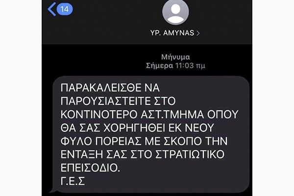 Από τη Διεύθυνση Δίωξης Ηλεκτρονικού Εγκλήματος της Ελληνικής Αστυνομίας διενεργείται έρευνα σχετικά με το παρακάτω μήνυμα (sms),που αποστέλλεται σε κινητά τηλέφωνα, καλώντας τους πολίτες να παρουσιαστούν στο κοντινότερο Αστυνομικό Τμήμα για δήθεν χορήγηση Φύλλου Πορείας από το Στρατό.
