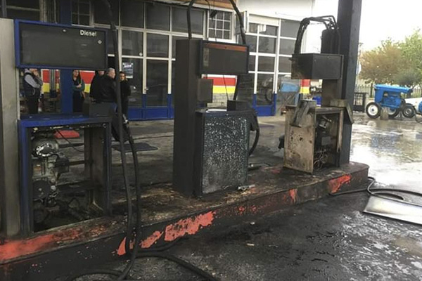 Την ίδια ώρα προκλήθηκε πυρκαγιά και σε βενζινάδικο στην περιοχή της Αξιούπολης , το οποίο ανήκει στον ιδιοκτήτη του βυτιοφόρου.