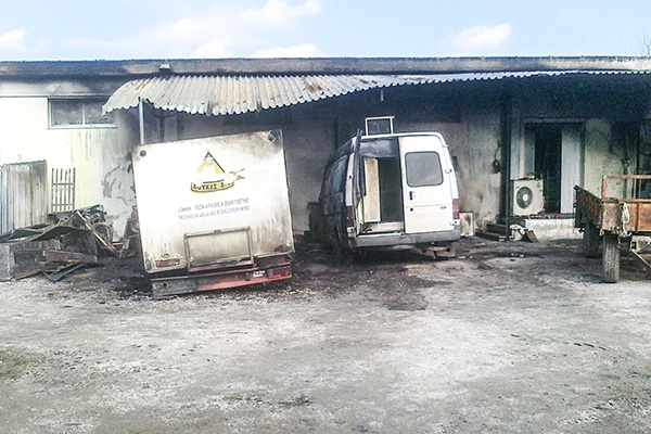 Η πυρκαγιά προκλήθηκε στον υπαίθριο χώρο σταθμευσης των Ι.Χ. φορτηγών οχημάτων της Επιχείρησης που βρίσκεται σε επαφή με τις κτηριακές εγκαταστάσεις, με αποτέλεσμα να καούν και να καταστραφούν εξ ολοκλήρου δύο Ι.Χ. φορτηγά - ημιφορτηγά ψηγεία μεταφοράς και διανομής των προϊόντων της. Επίσης κάηκαν και καταστράφηκαν ολοσχερώς δύο κλιματιστικές μονάδες τύπου "ντουλάπας" που βρίσκονταν τοποθετημένες πλησίον των σταθμευμένων οχημάτων. Από την θερμοκρασία και την εκπεμπόμενη ακτινοβολία θερμότητας προκλήθηκε καπνισμός του χώρου του εργαστηρίου της Βιομηχανίας καθώς επίσης και τήξη των φωτιστικών οροφής που υπήρχαν εντός αυτού. Τέλος προκλήθηκαν ζημιές και στο λαμαρινοσκεπές στέγαστρο προστασίας των οχημάτων.