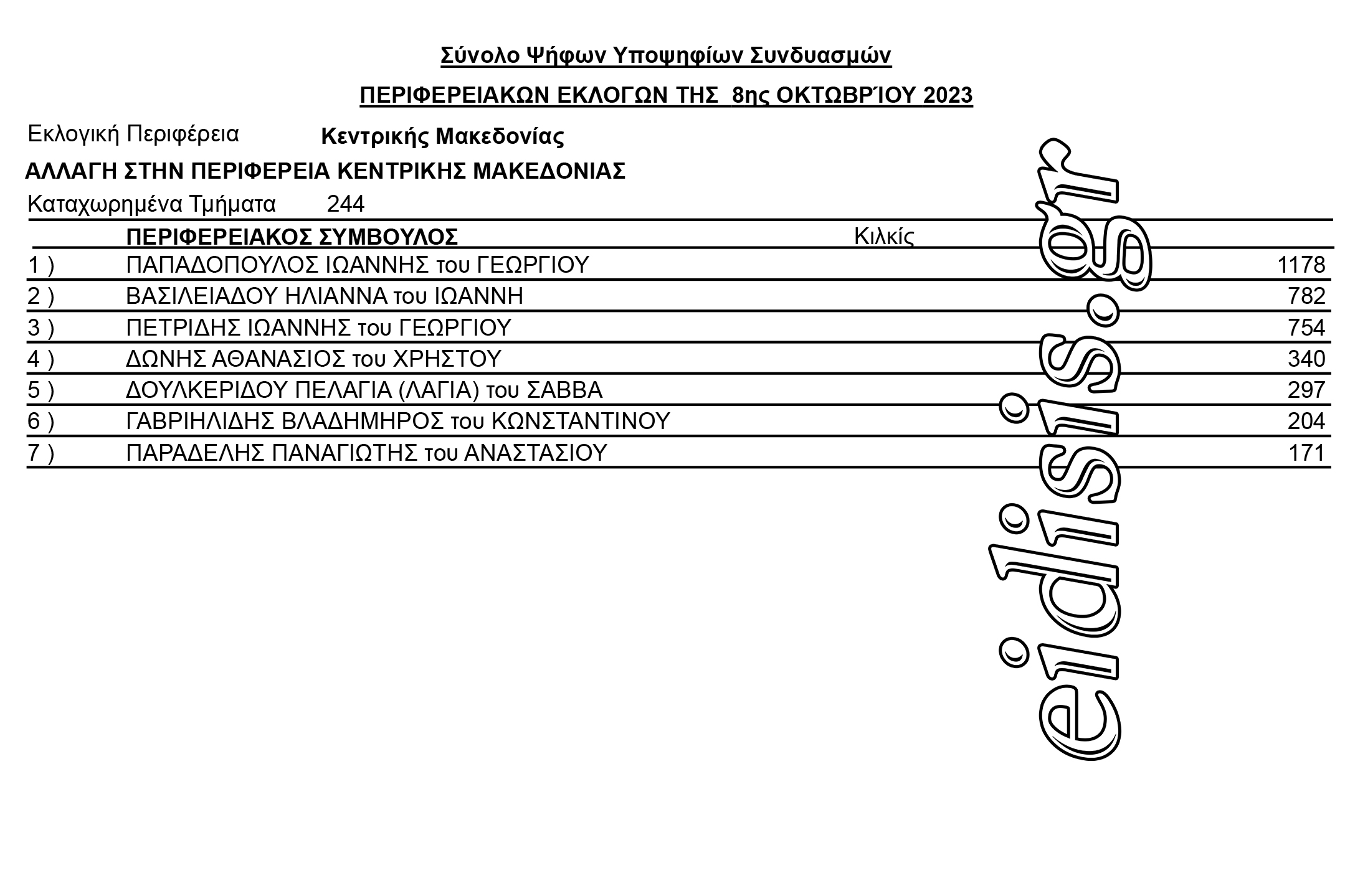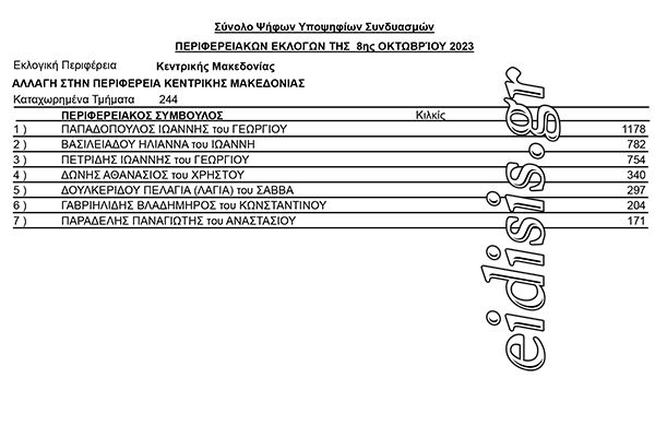 Σταυροί προτίμησης στο συνδυασμό «Αλλαγή» του Γιάννη Μυλόπουλου