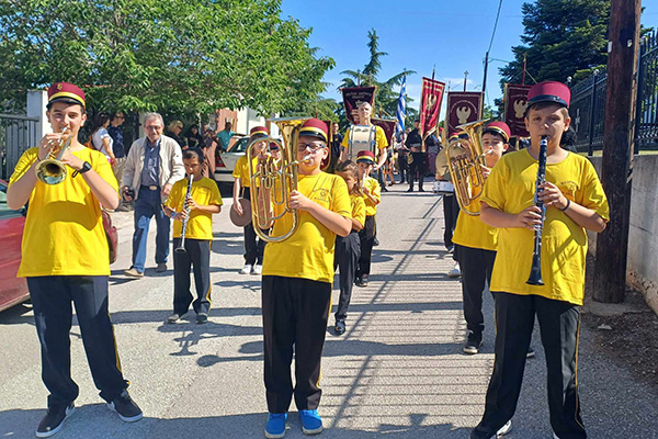 Πένθιμη η ημέρα ανάμνησης των γεγονότων έδωσε τον ανάλογο τόνο στη Φιλαρμονική της Νέας Σάντας που προεξήρχε της βουβής πομπής από τον Ιερό Ναό στο Μνημείο της Πλατείας των Παλληκαριών.