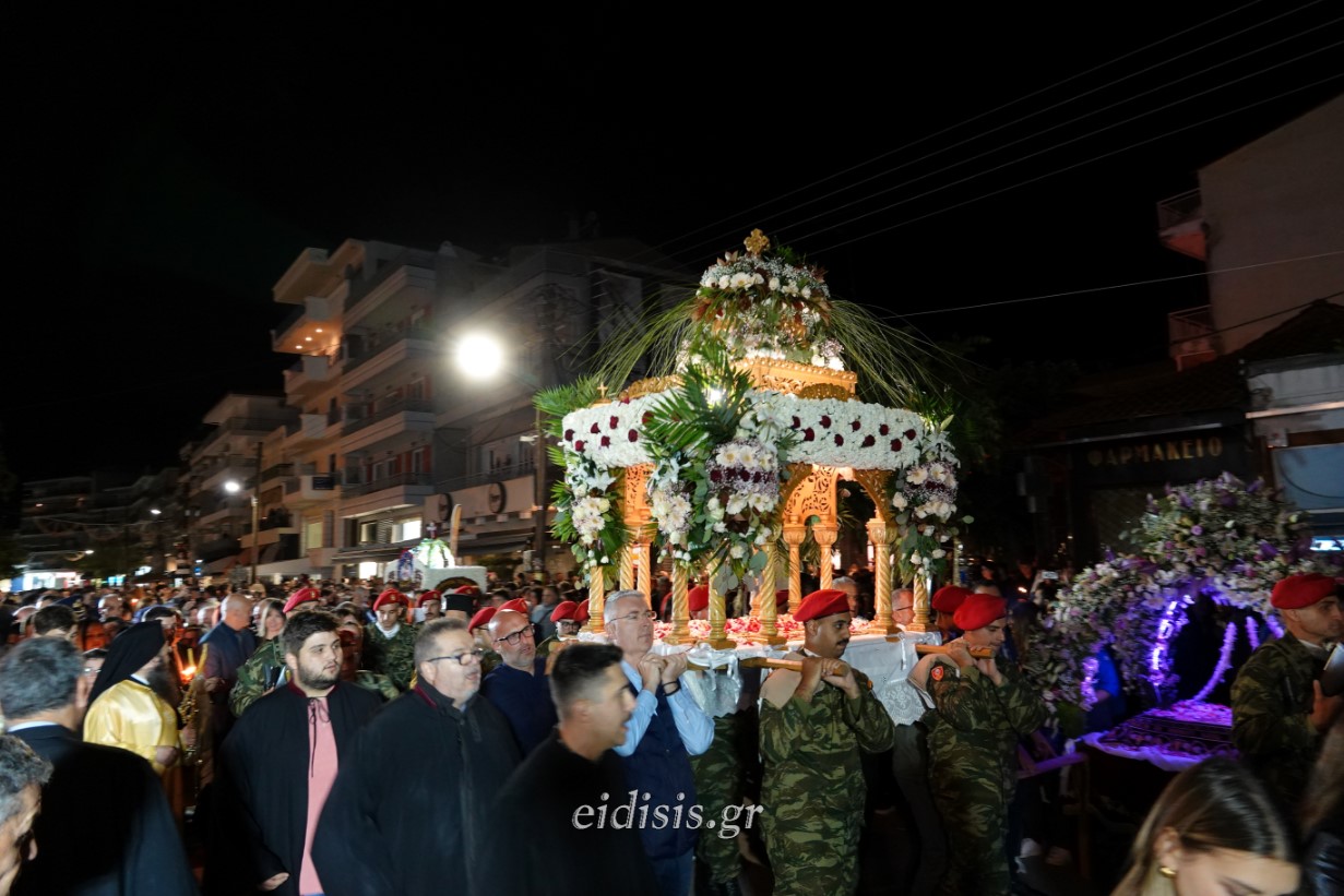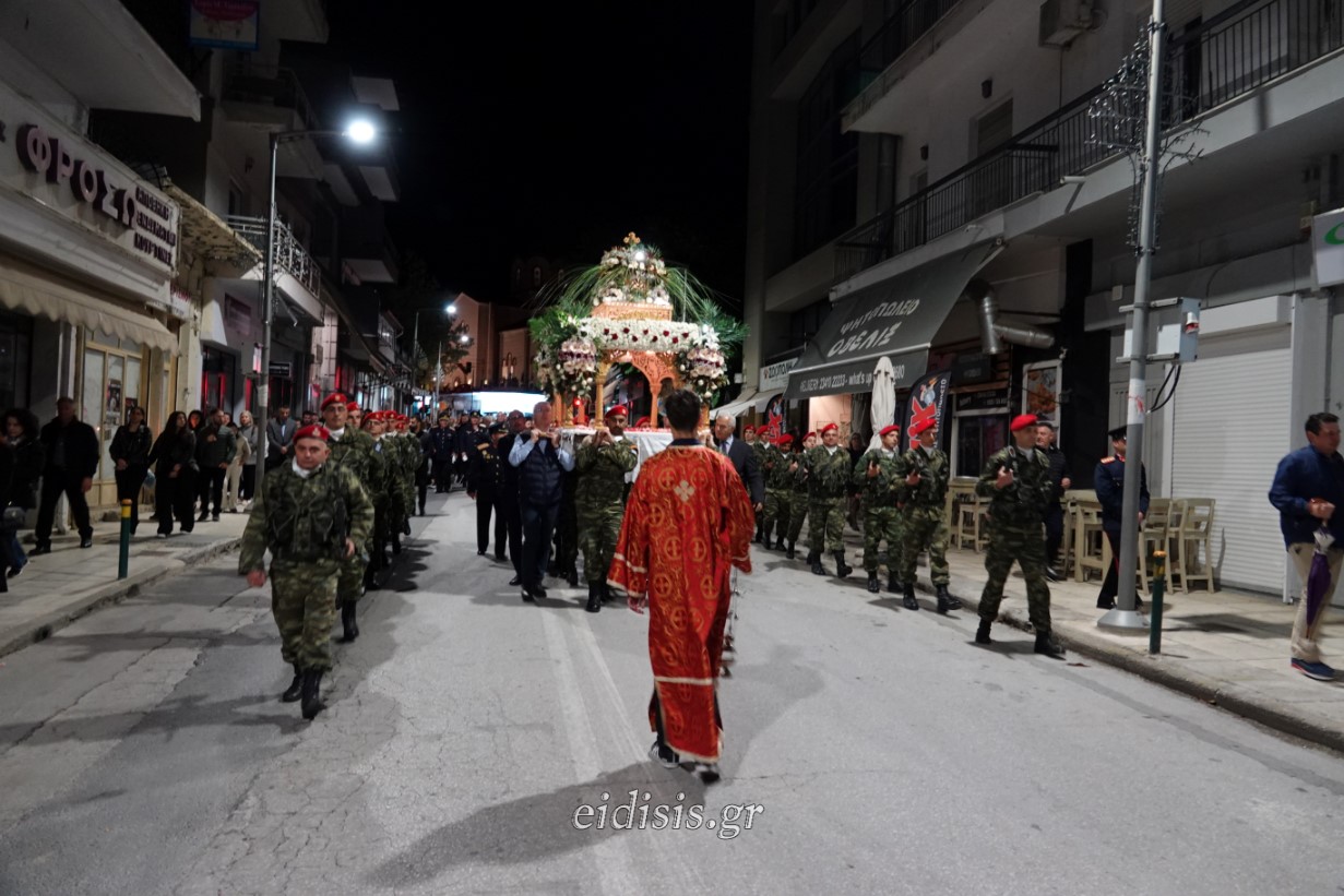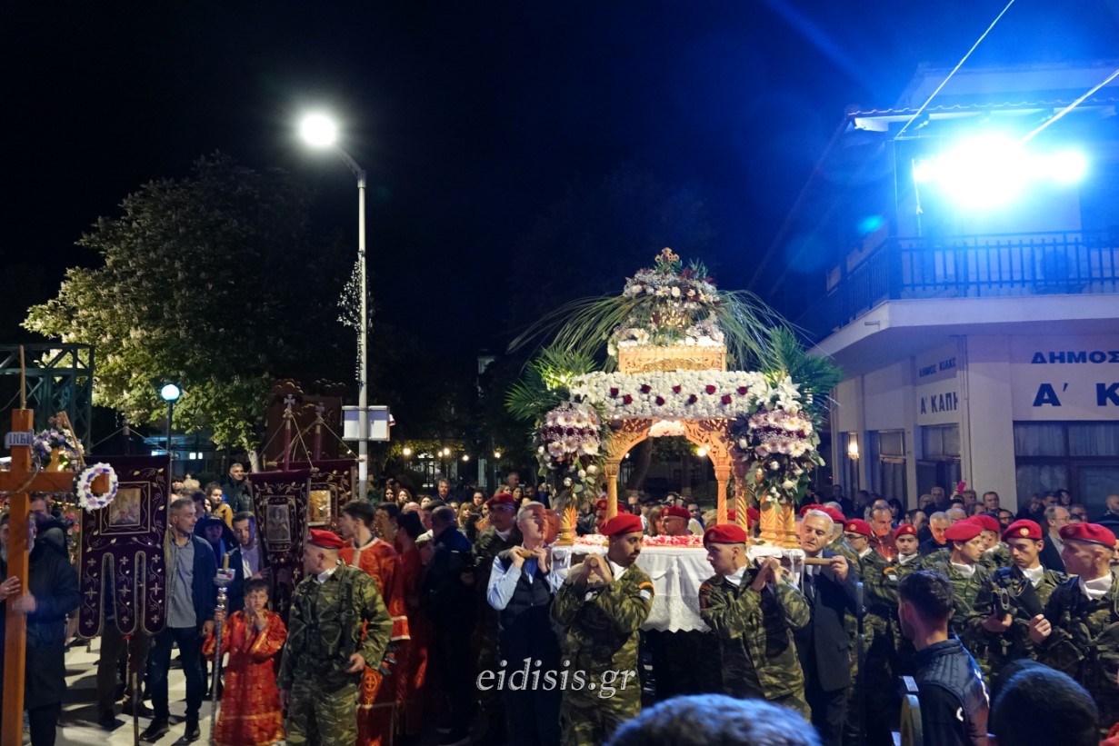 Εν συνεχεία και με την συνοδεία τιμητικού αγήματος της 71ης Α/Μ Ταξιαρχίας "Πόντος", το οποίο και έφερε όπως προβλέπεται τα όπλα σε στάση υπό μάλης και τις μελωδικές ψαλμωδίες των μελών των Κατηχητικών του Μητροπολιτικού Ναού, πραγματοποιήθηκε στο κέντρο της πόλεως, μπροστά από τη Λέσχη Αξιωματικών Φρουράς, η συνάντηση των Επιταφίων του Μητροπολιτικού Ναού, του Ιερού Ναού των Αγίων Πεντεκαίδεκα Ιερομαρτύρων, Πολιούχων και Εφόρων του Κιλκίς και του Ιερού Ναού Κοιμήσεως της Θεοτόκου.
